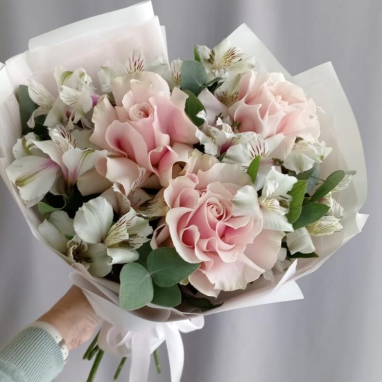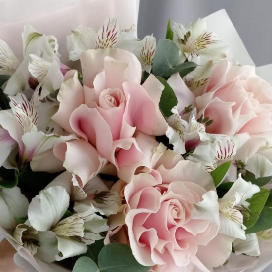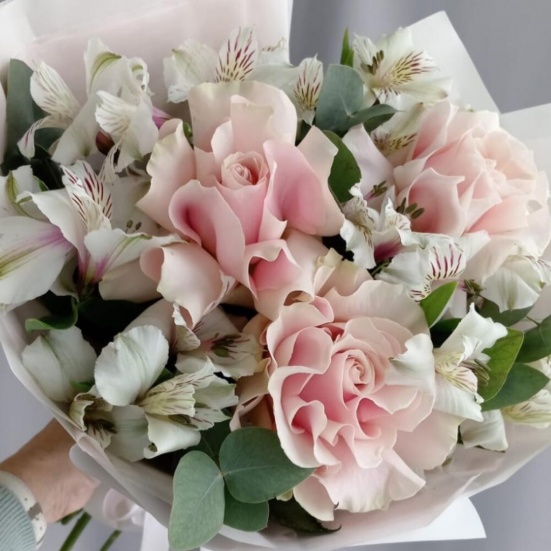 Букет из 3 французских роз и Альстромерии в Тобольске
