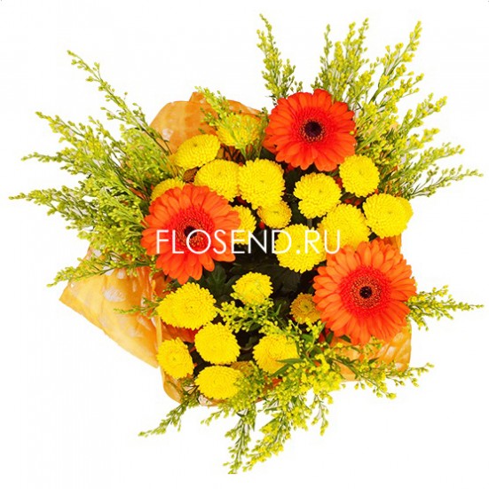 Букет из желтых хризантем и гербер